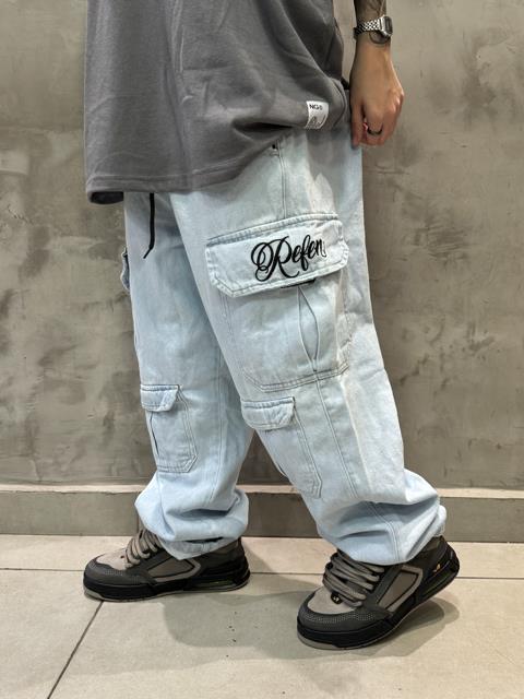 Se liga nessa Calça Cargo Jeans Preto Marmorizado da Refen, super macia e confortável. Esse é um modelo tem 4 Bolsos na Frente e tem a modelagem larga. A cintura tem elástico e pode ser ajustada pelo cordão conforme sua preferência.