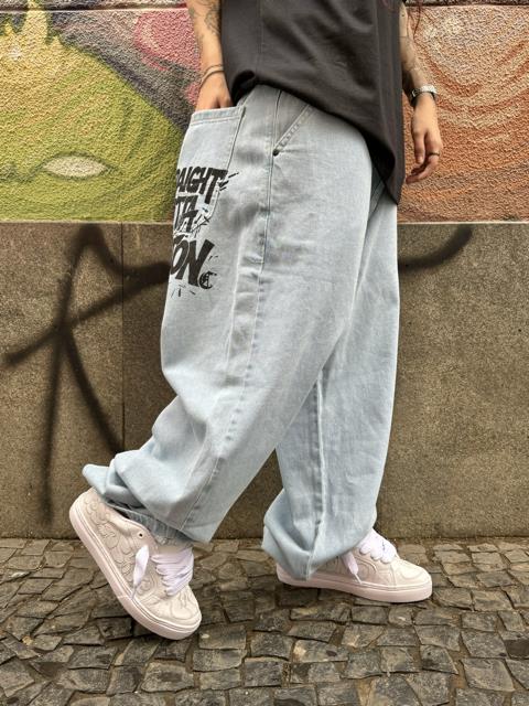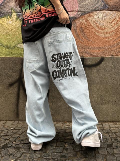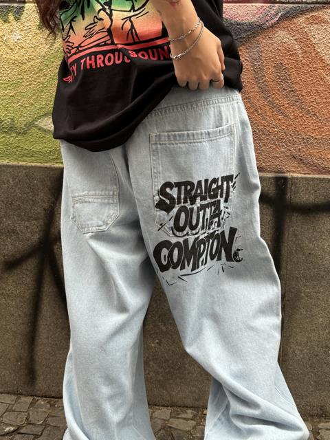 Calça Baggy Compton Jeans Cristal Estampa Bolso