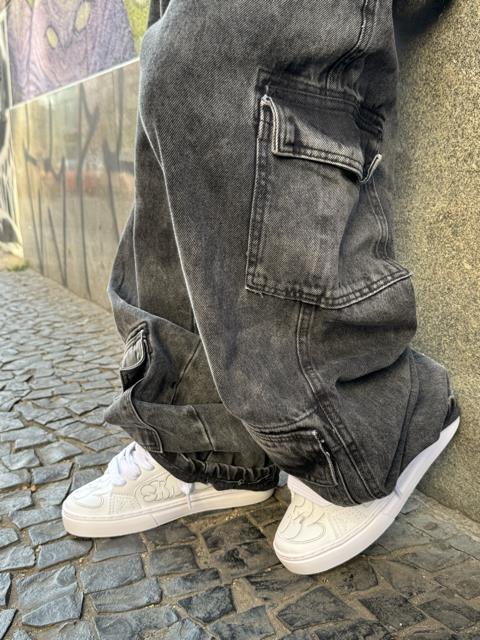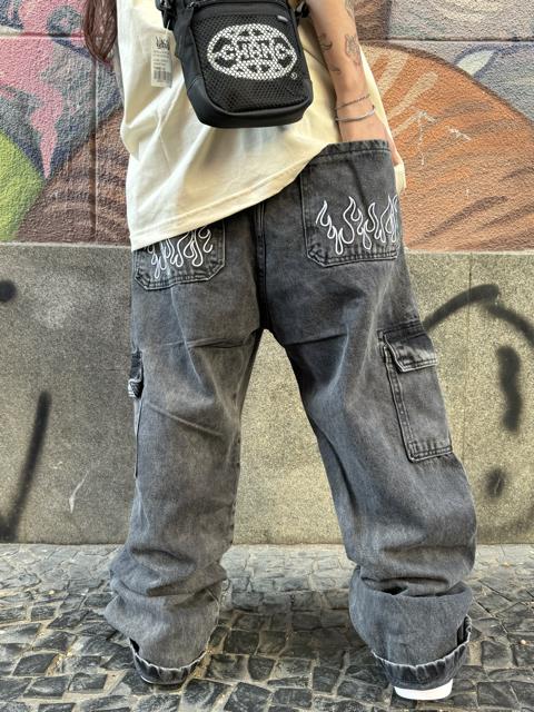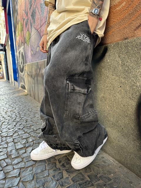 Calça Baggy Trip Side 4 Bolsos Jeans Black Borda Foguinho
