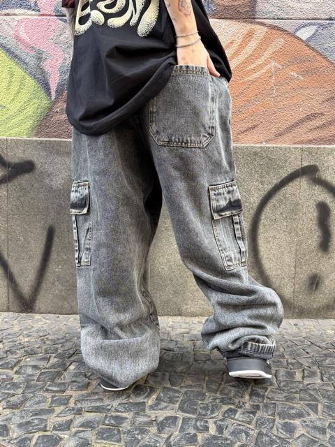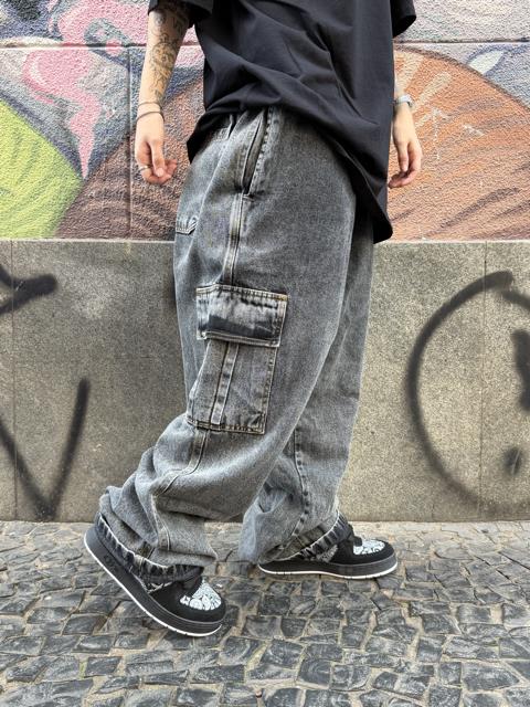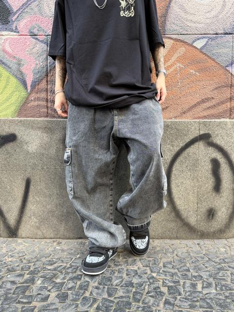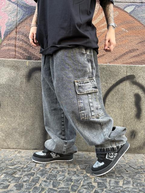 Calça Cargo Baggy Street Wear Jeans Black Marmorizado
